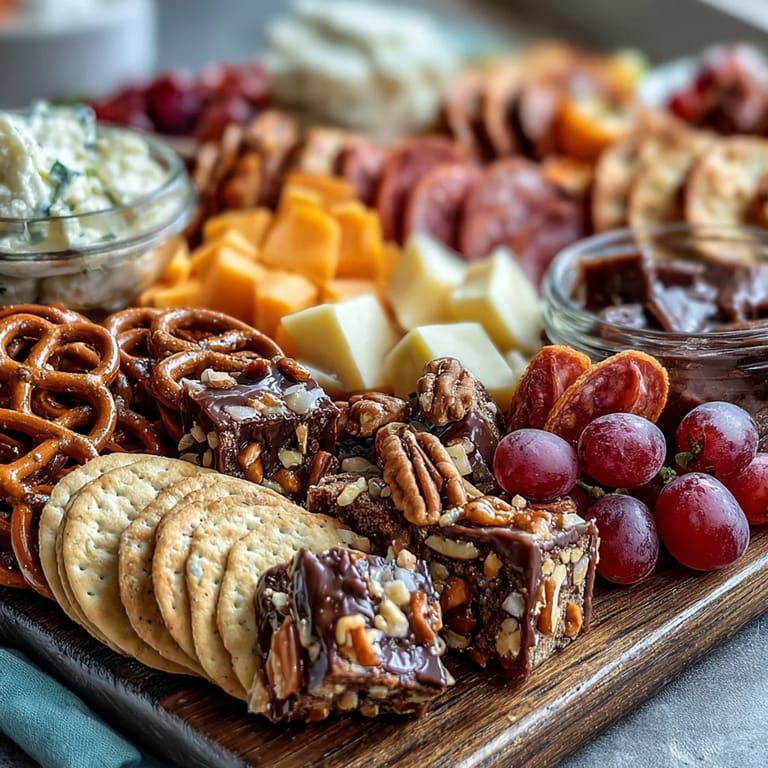 - Sweet Bites: 1 cup (150 g) chocolate-covered pretzels, 1 cup (120 g) assorted berries (strawberries, blueberries, raspberries), 1 cup (120 g) grapes, 1 cup (120 g) mini cookies or macarons, 1/2 cup (80 g) dried apricots, 1/2 cup (80 g) gummy candies (optional), 1/2 cup (80 g) yogurt-covered raisins