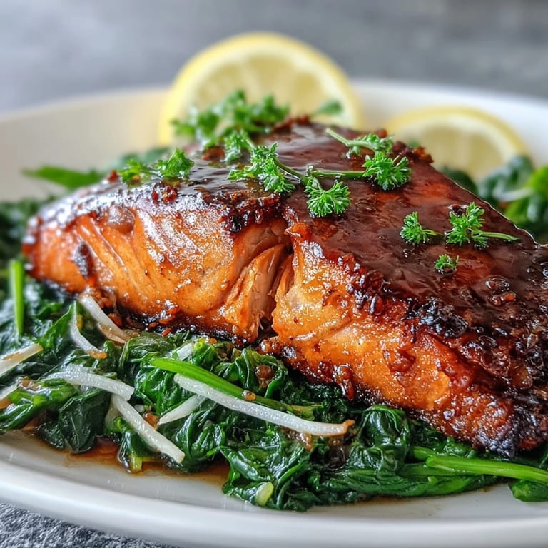 - Divide sautéed spinach among plates, top with miso-glazed salmon, and serve with lemon wedges.