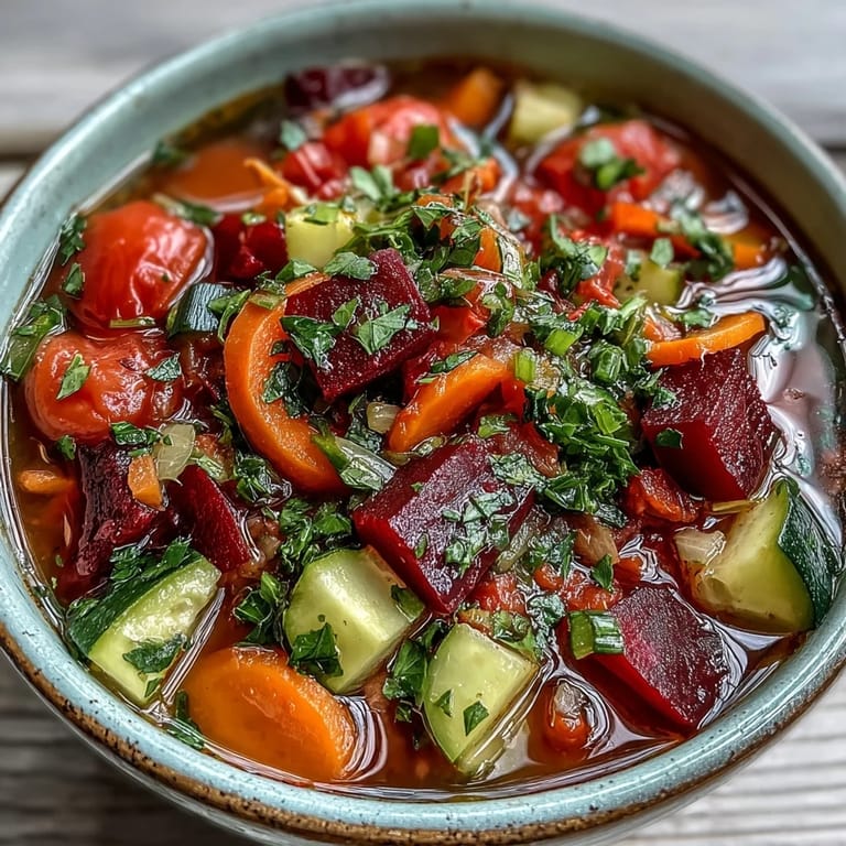 Pin It There's something almost magical about watching a soup transform from a pile of raw vegetables into something that glows on the stovetop. I discovered this rainbow vegetable detox soup on a gray January morning when my kitchen felt too quiet and my body felt too sluggish, and I wanted something that tasted like spring even though snow was still on the ground. The moment those beets hit the hot oil, the whole pot turned this deep crimson that made me smile, and I knew this was exactly what I needed. What started as a simple way to use up vegetables from the farmers market became my go-to remedy whenever I need to reset, filling my kitchen with the kind of wholesome warmth that makes you feel genuinely cared for.