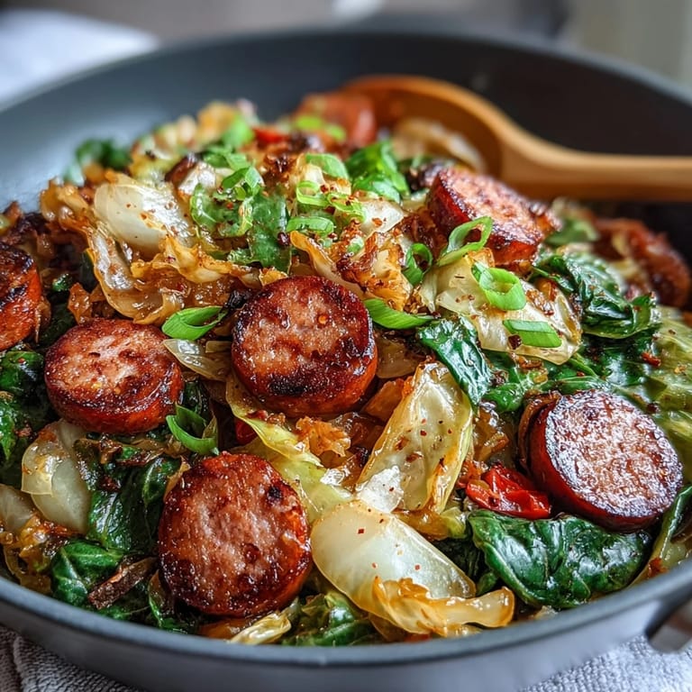 Pin It The smell of smoked sausage hitting a hot skillet takes me back to my grandmother's tiny kitchen, where she'd cook cabbage until it was meltingly tender and sweet. She never measured anything, just tossing in ingredients by feel and trusting her nose. I've adapted her method over the years, but the soul of this dish remains unchanged, simple ingredients transformed by patience and heat into something deeply comforting.