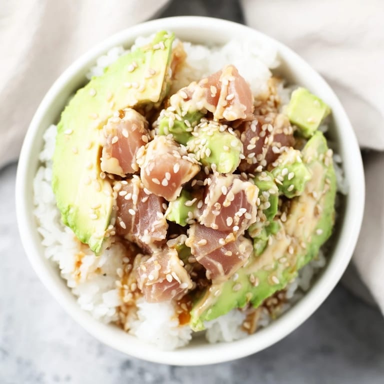 Pin It My neighbor knocked on my door one Tuesday evening holding a bag of jasmine rice and a can of tuna, asking if I could do anything with them. I had half an avocado in the fridge and some leftover cucumber from lunch prep. Twenty minutes later, we were sitting on my kitchen counter eating what became my go-to weeknight bowl. The sesame oil I drizzled on top filled the whole apartment with that toasty, nutty smell that makes you forget you're eating something this simple.